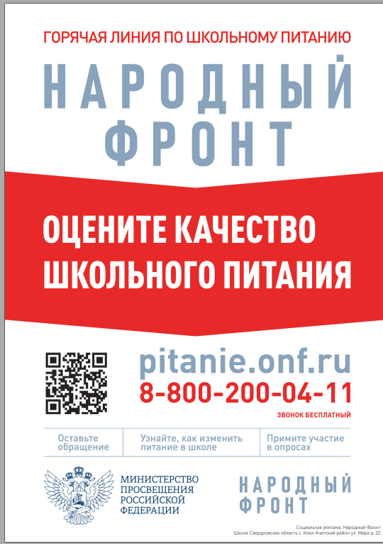 Телефон горячей линии Министерства просвещения РФ по вопросам организации питания для школьников: +7 (800) 200-91-85